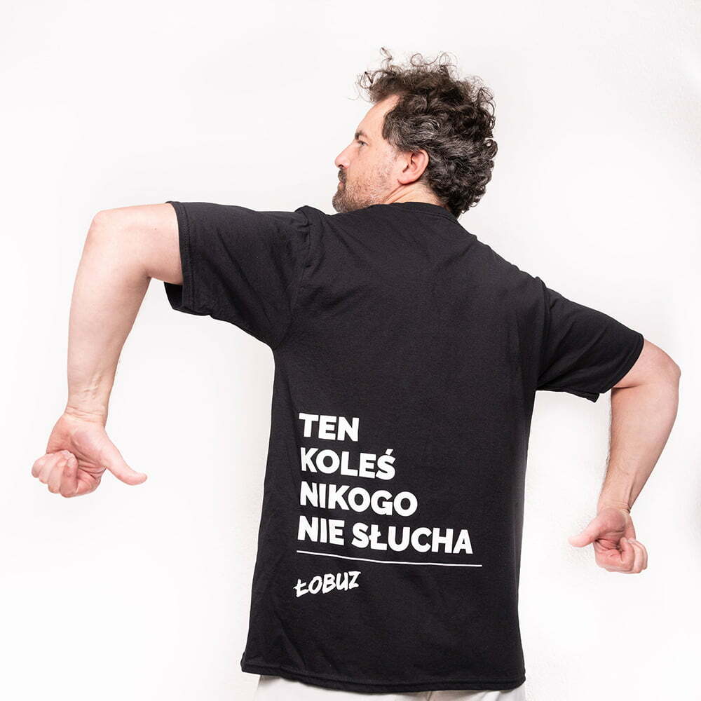Koszulka typu unisex, której zdecydowanie nikt inny na Twojej dzielni nie ma. Z przodu posiada naszywkę z rzułym jak portret Wielkiego Polaka logo, z tyłu zaś fragment tekstu piosenki, którym śmiało możesz afirmować swoje buntownicze nastawienie. Rozumiemy, nie oceniamy.